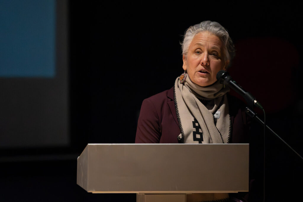 The evening’s programming marked the return of R.G. Miller’s “Tsi Non:we Entewaha’hara’ne / Our Path Forward” installation, which has been set up in the newly restored former Mohawk Institute Residential School.