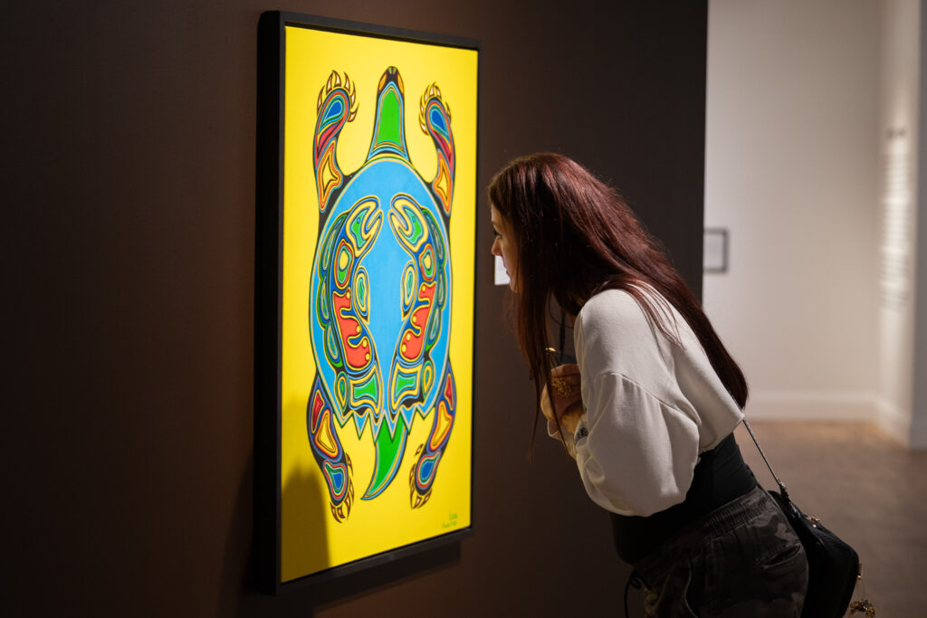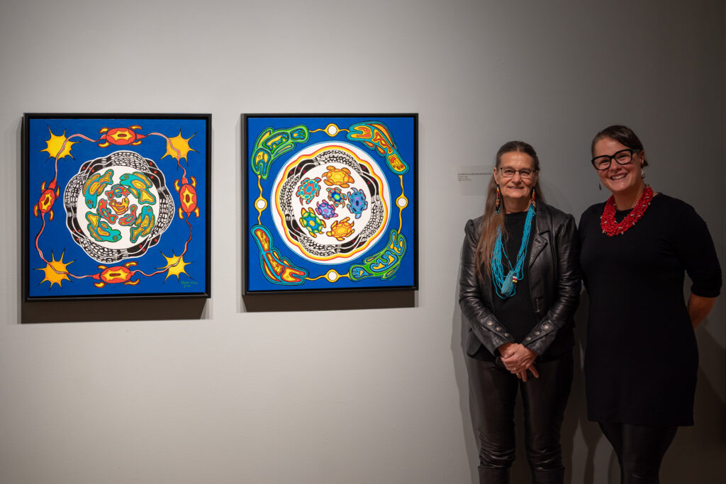 The bold, colourful artwork is done in the Woodland style and reveals the artist and her family’s connection to water and nature, drawing on her memories of time in Algonquin Park and Manitoulin Island.