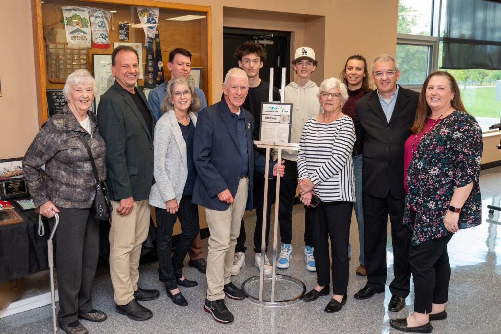 Around 20 people celebrated Bob Coyne and his contributions to local youth sports during the County of Brant Sports Hall of Fame induction ceremony on Saturday, October 11, 2025.