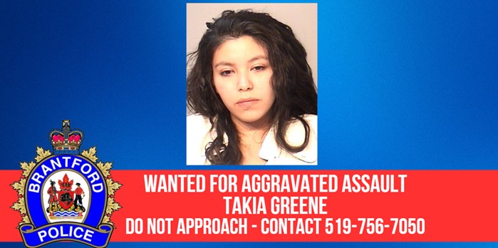 Takia GREENE, age 22, of Ohsweken, has been identified as the suspect and is wanted for this violent incident. A warrant has been issued for the arrest of GREENE, who faces the charge of Aggravated Assault.