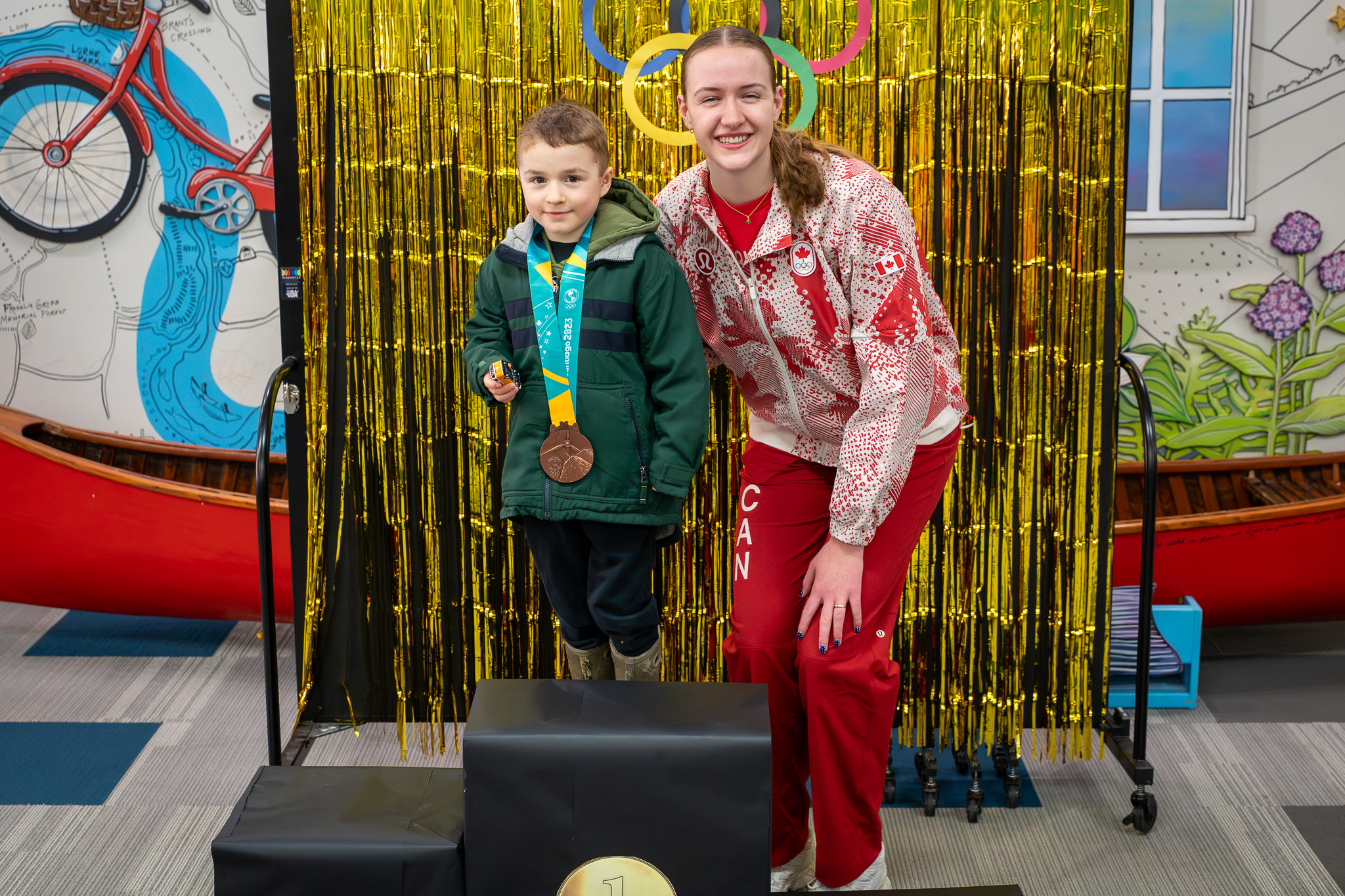 “The kids who came loved to talk to Claire and take pictures with her and the medals they made at our little podium here, so it was really fun. We’re really grateful Claire came, and for the people who came out today. We really like to support Canadian athletes and the other athletes from around the world. The Olympics are an opportunity for countries to come together, to cooperate and be friends with one another, and so we thought this would be a good opportunity for us to do a program at the library, and it went well,” she said. “The kids who came loved talking to Claire and taking pictures with her and the medals they made at our little podium here, so it was really fun. We’re really grateful Claire came, and for the people who came out today too.”