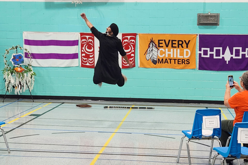 Following a brief introduction and land acknowledgment from Gashgarian, Heidi Pinand and Alicia-Lynn Morin of the Gihekdagye Friendship Centre (BRISC) officially kicked off the event with a welcome song and an oral presentation explaining the meaning behind certain Indigenous dances.
