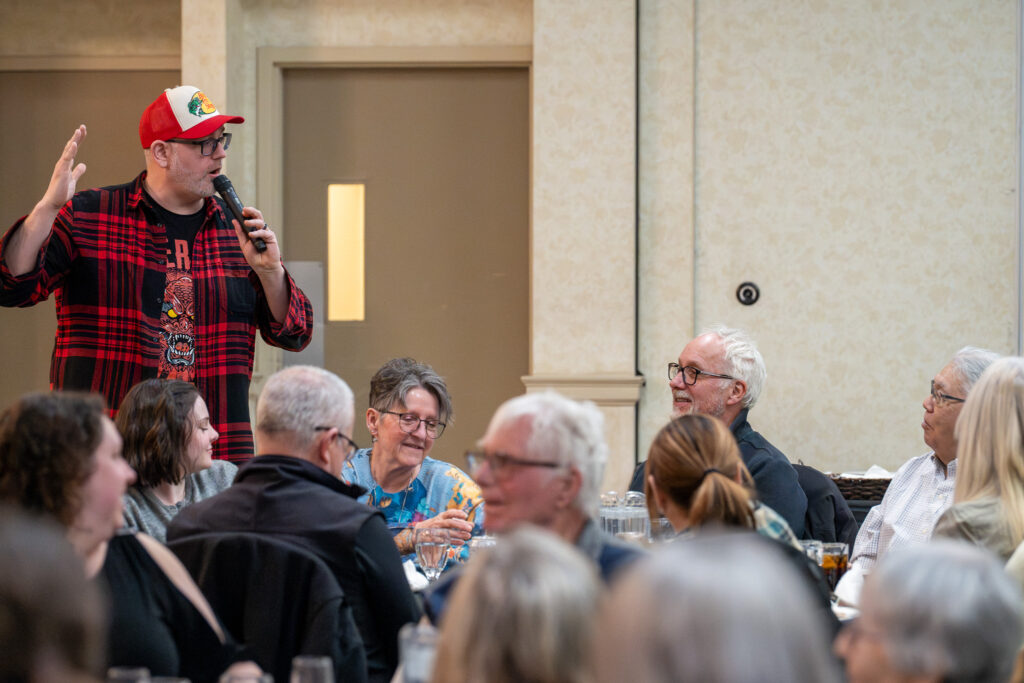 Following a dinner of pizza, pasta, salad, garlic bread, and dessert, Chris Jarvie, the evening’s master of ceremonies, kicked things off by interacting with the crowd.
