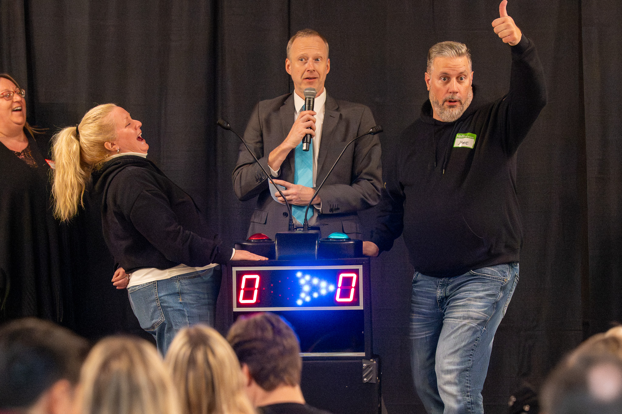 The game had six teams of five facing off in the “Family Feud” inspired game, many of their answers leaving the nearly 100 people in attendance in stitches.