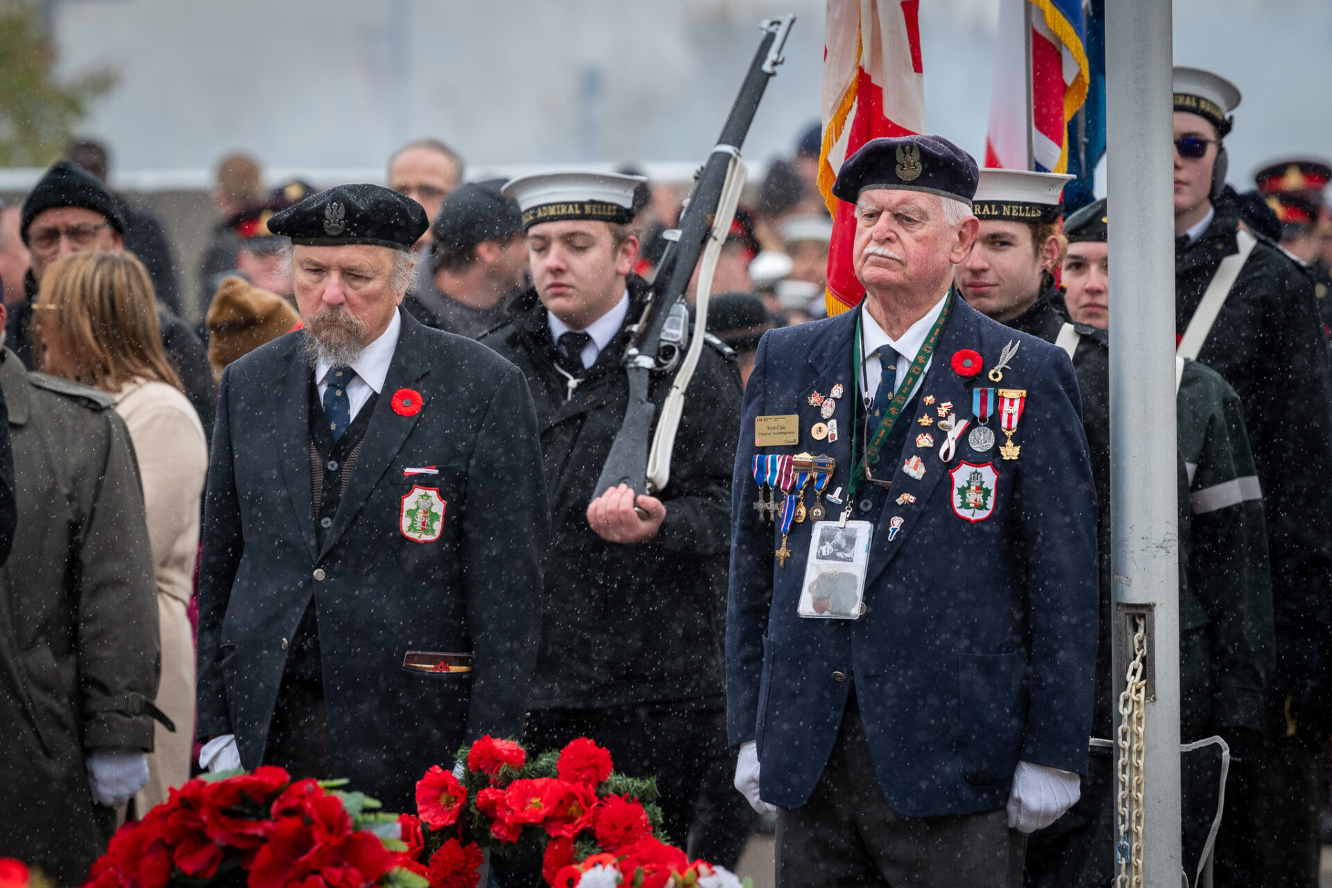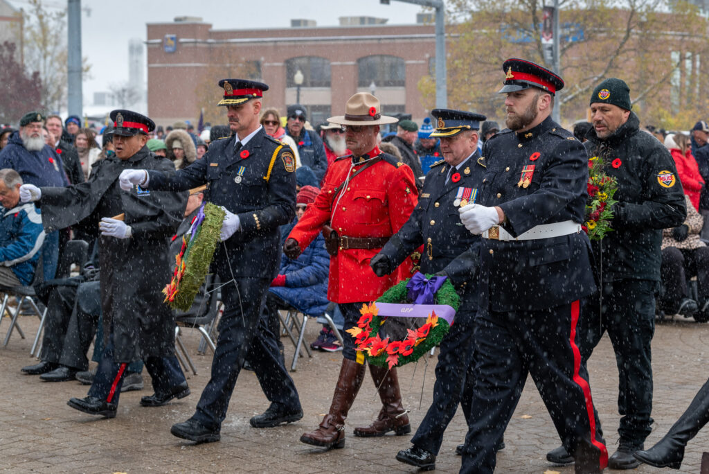 Members of Veterans Affairs Canada, the 56th Field Artillery Regiment, local dignitaries, various legions and veterans associations, as well as representatives of the police, fire and paramedic services, all laid wreaths in honour of those who served in World War One, World War Two, Korea, Afghanistan, and the United Nations Peacekeepers.