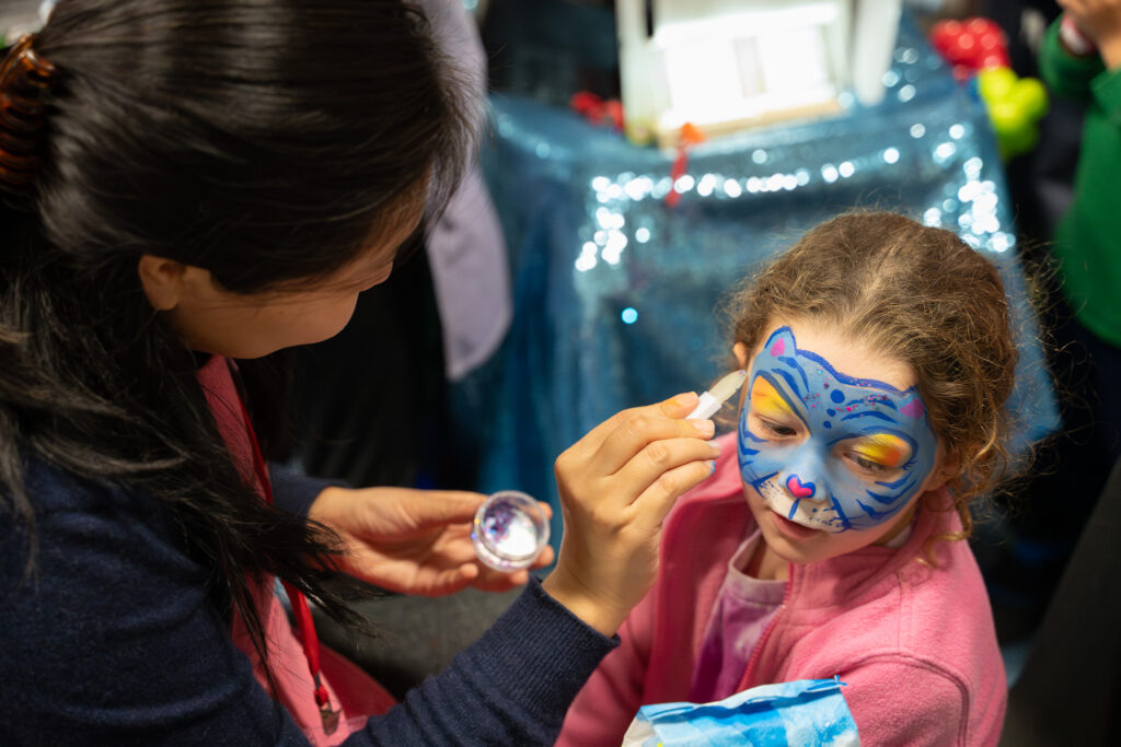 Brianna Hunter, 4, sits patiently while Eva Qian of Starry Party Solutions paints her face during EduColor Press’ inaugural Kids Adventure Expo on Saturday, February 21, 2026.