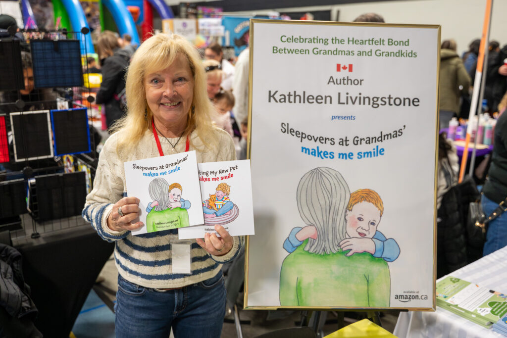 Brantford-based children’s author, Kathleen Livingstone, shows off of her books during EduColor Press’ inaugural Kids Adventure Expo on Saturday, February 21, 2026.