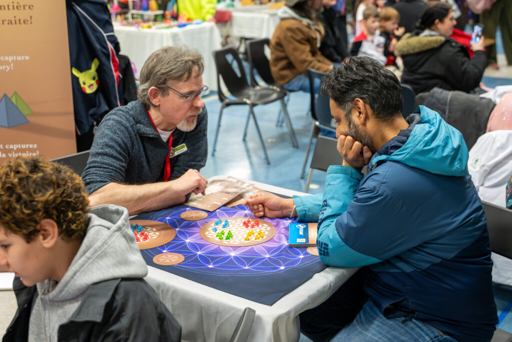A representative of BS Games teaches a father how to play a game of Sinoda during EduColor Press’ inaugural Kids Adventure Expo on Saturday, February 21, 2026.