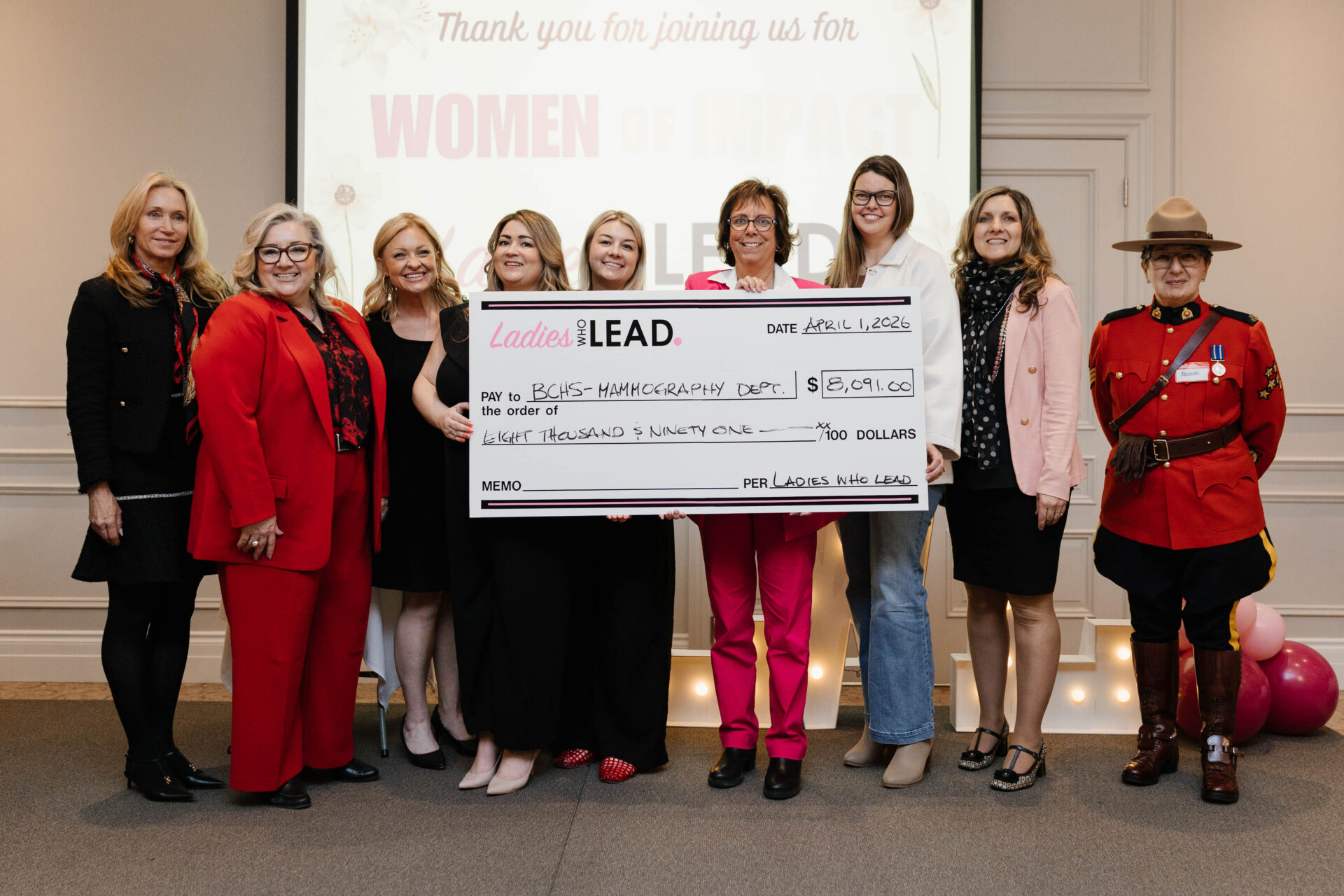 Ladies Who Lead announced that proceeds from the evening, totalling $8,091 were donated to the Brant Community Healthcare System Foundation, specifically supporting the Mammography Department. This contribution will help to ensure that vital healthcare resources remain accessible to women throughout our community. The evening also featured an empowering keynote address by Nina Purewal, who shared insights on mindfulness and finding balance in a high-impact world.