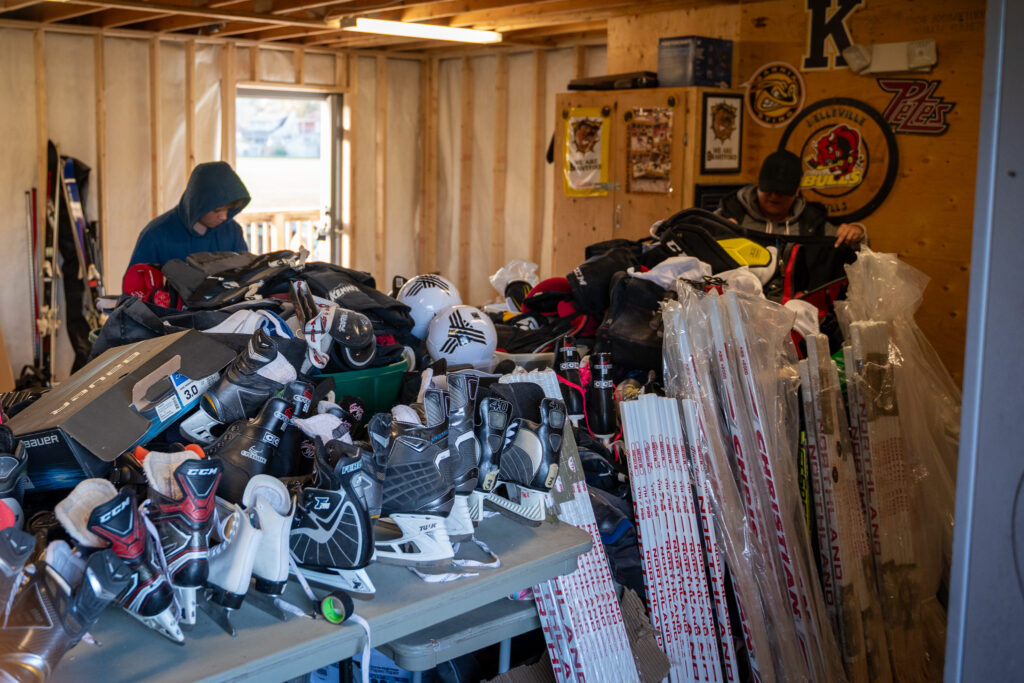 From soccer balls to footballs, basketballs, hockey sticks, helmets and skates, shin pads, cleats, baseball gloves and more, there were hundreds of pieces of equipment available.