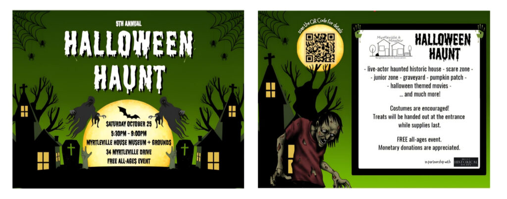 The Myrtleville Mayfair Neighbourhood Association has partnered with the Brant Historical Society for our fifth family-friendly Halloween event. Walk the Myrtleville grounds and dare to enter the live-actor haunted house.