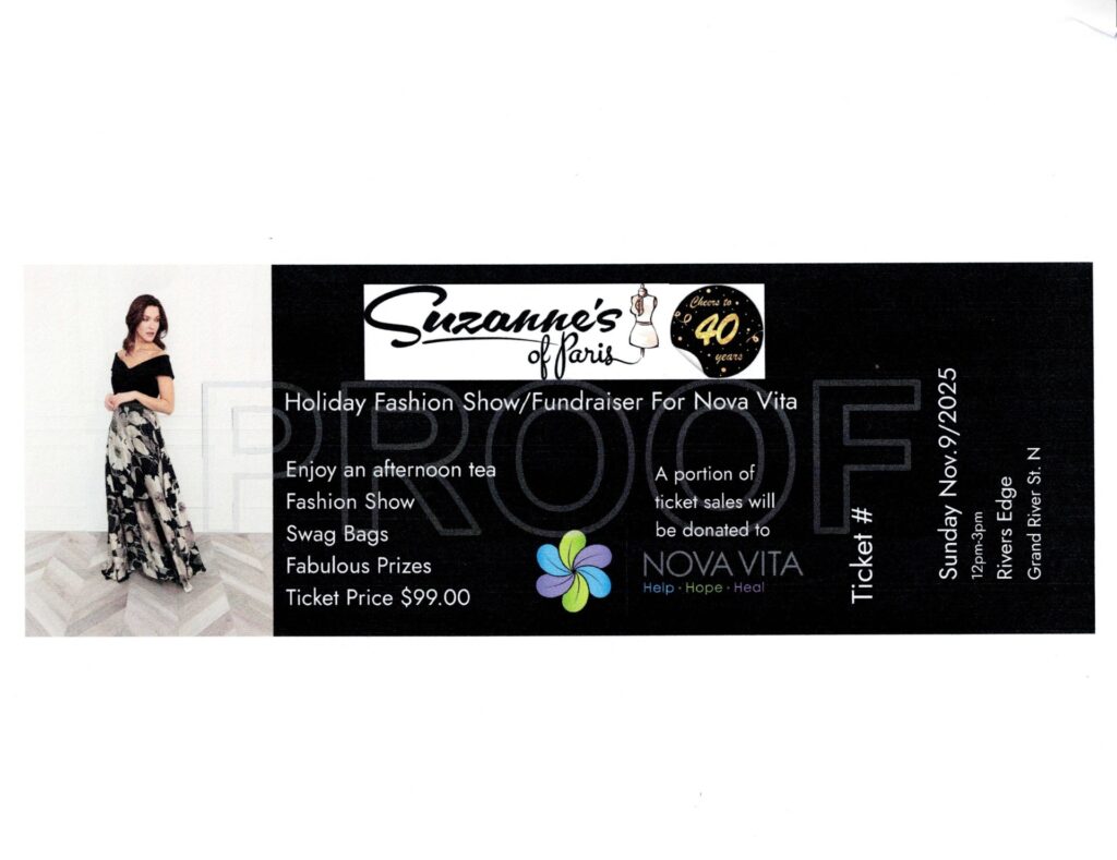 Suzanne’s of Paris is hosting a HOLIDAY FASHION SHOW/FUNDRAISER FOR NOVA VITA