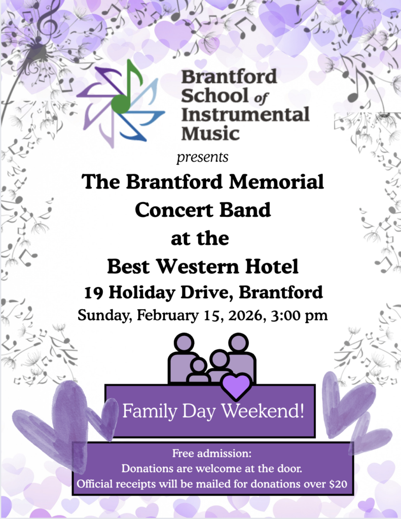 Come and enjoy the Brantford Memorial Concert Band at the Best Western Hotel (19 Holiday Drive, Brantford)