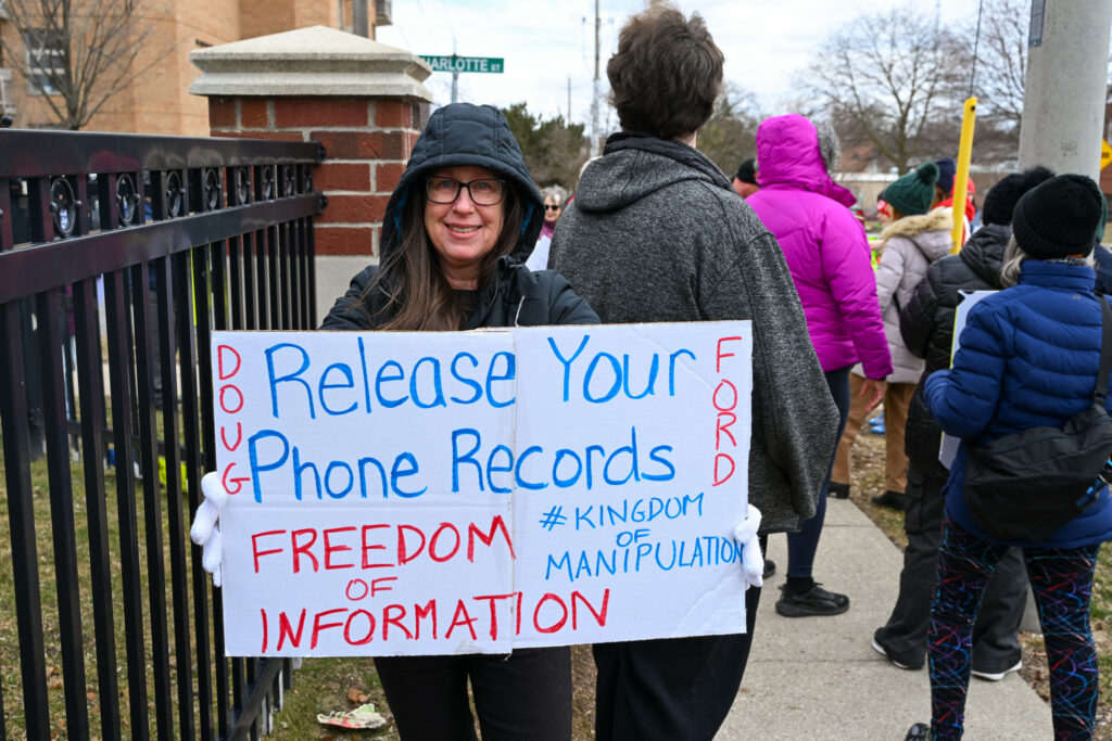 “This public protest is really to bring all of these issues together to say that all of us, collectively, are angered by what Doug Ford is doing,” she said. “…My biggest concern is people’s apathy. People are exhausted. They are working ten-hour days and still not able to pay their bills, and so there’s really not a lot of energy left. I’m here on behalf of those people that can’t be here protesting like the students and those people that are affected by health concerns.”