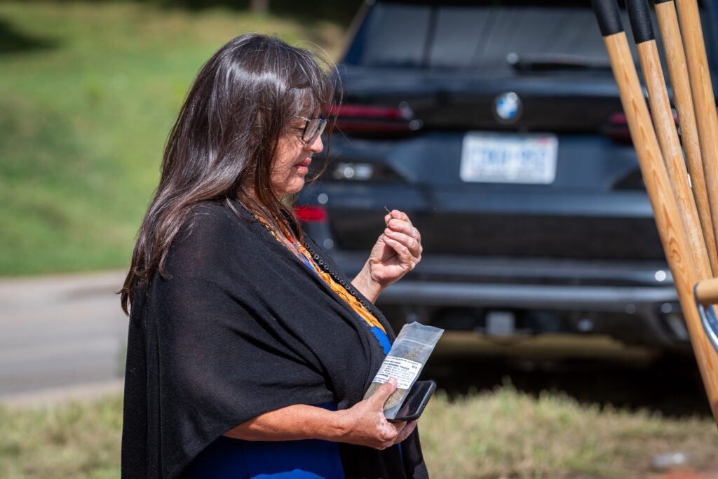 To open the event, Elder Gail Whitlow offered a blessing over the land, presenting both tobacco and black obsidian as part of the ceremony.