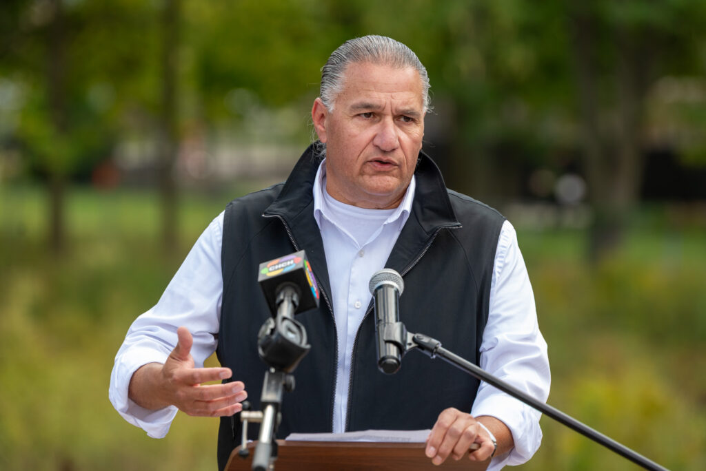 John Gordon, NICHI’s Chief Executive Director, congratulates BNH on its work during the groundbreaking ceremony for the West Street project on Friday, September 26, 2025.