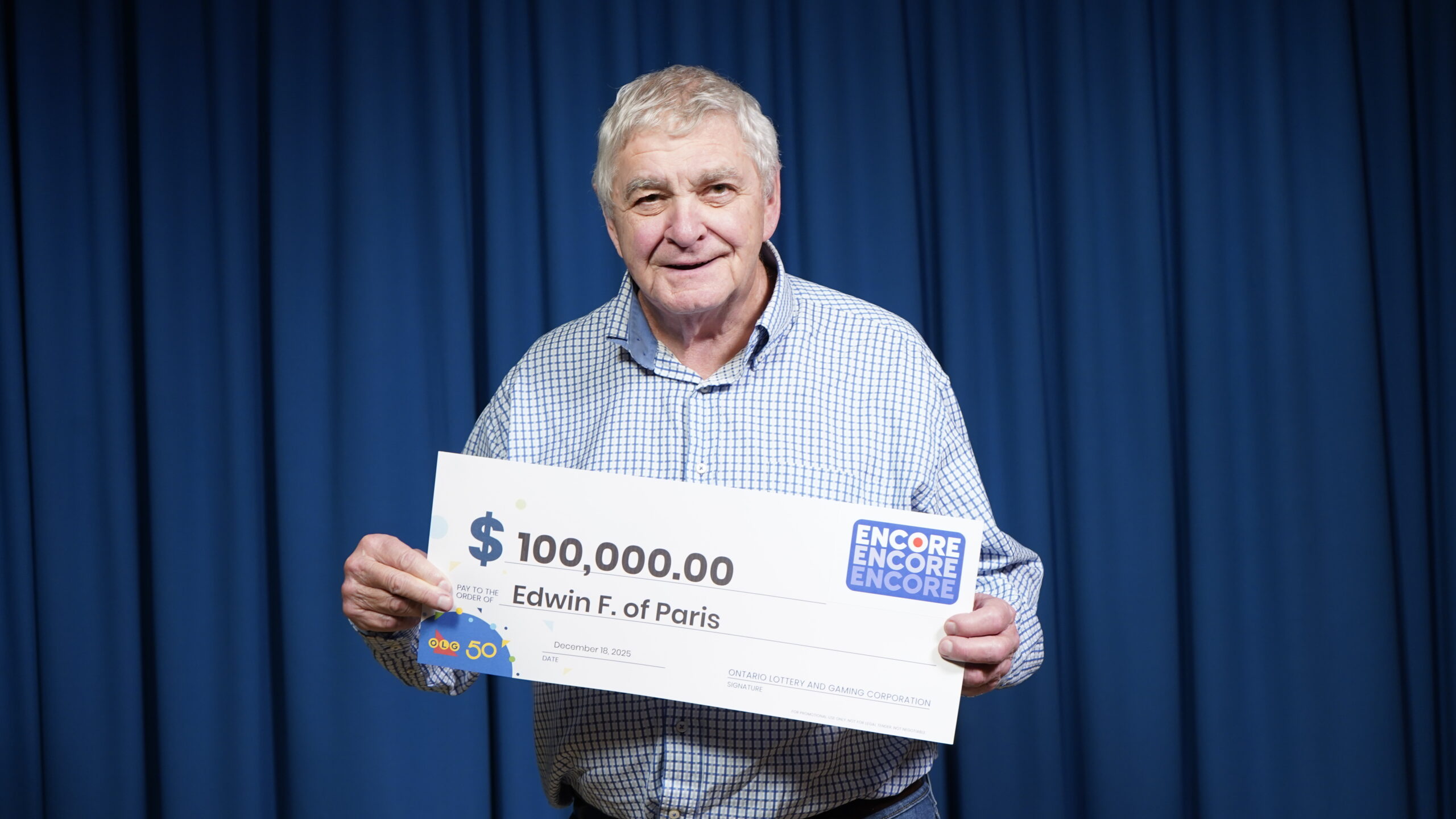 Edwin Flewelling of Paris matched the last six of seven ENCORE numbers in exact order in the November 29, 2025 LOTTO 6/49 draw to win $100,000.