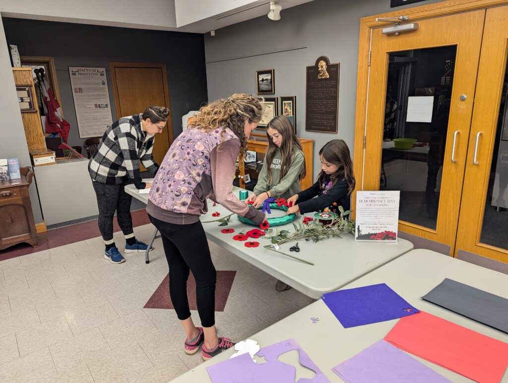 “It was nice to have the few people that we did have, creating a wreath so that we can lay something on behalf of the library. …It was just wonderful to have members of the community and the library coming together to create something and seeing everyone working together with all our different levels of experience and our different levels of creativity and our ideas,” she said. “ It wasn’t like everyone was making their own poppy and putting it on, we would have three people working on the poppies at the same time; one was at the gluing station, another was cutting petals… so it was nice to see because even with each individual thing added, there was teamwork to it. …I hope that we can have more events like this for other topics, whether it be just other topics that are important to the history or the community of Princeton.”