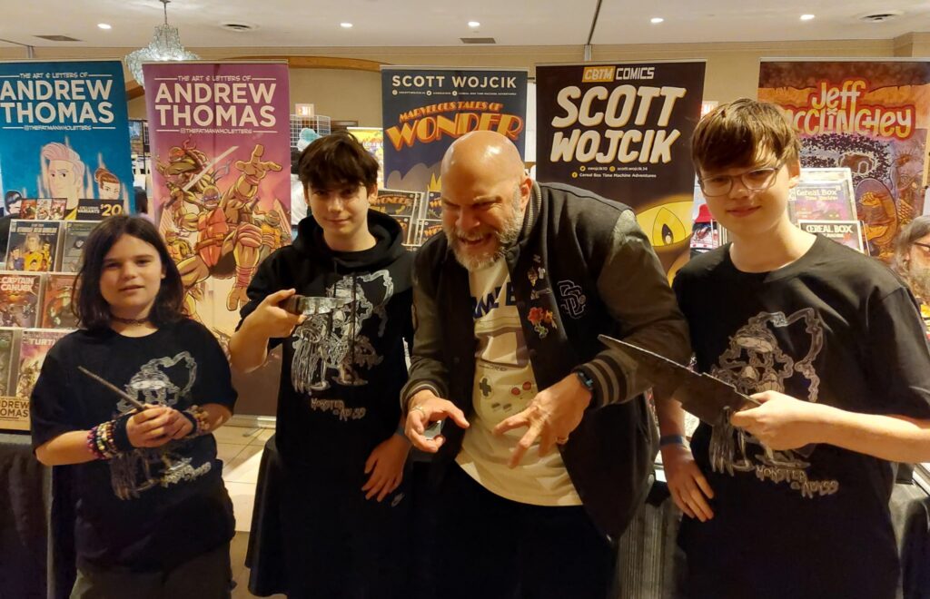 “As a creator, attending shows is one of the most important things you can do [because] it provides great opportunities to network and meet industry professionals, which has helped me improve as a writer. I’ve been fortunate to sit with artists like Mike Rooth and Dave Ross (Marvel), allowing me to understand their processes, and after I chatted with them, I quickly integrated their best practices into my own work,” Wojcik reflected. “There was another time, when I had a great conversation with Peter Tomasi, who writes for Ghost Machine. Peter graciously shared a copy of his Batman #1000 script, suggesting I use it as a learning tool. It was amazing to get to see the perspective of a seasoned writer like him [which] dramatically helped me improve my own scripting; it’s easily ten times better now. The knowledge gained at these shows has been indispensable.”