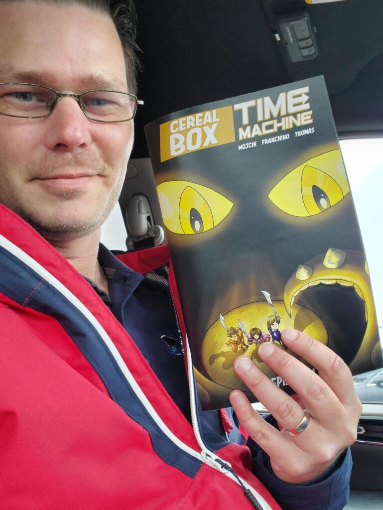 He would also collaborate with others when developing Cereal Box Time Machine, including comic artist and character designer Leandro Franchino, as well as letterer/artist Andrew Thomas.