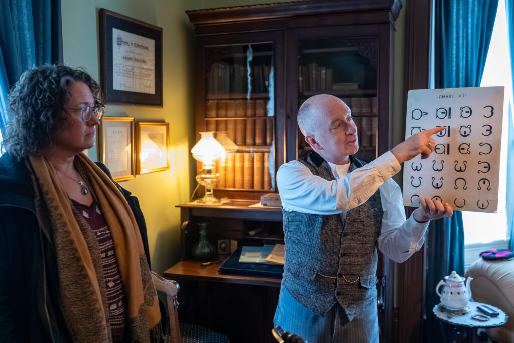 Starting in the main foyer, Wood guided guests into the library where he pointed out some of the tools Melville used to teach his students, his favourite place to lounge, as well as some of Eliza’s original paintings and sketch books. In the dining room, Wood spoke about the family’s eating routines, Alexander’s preference for plain chinaware, and what the curator believes to be one of Eliza’s best paintings; a photo of her three young sons back in Scotland.