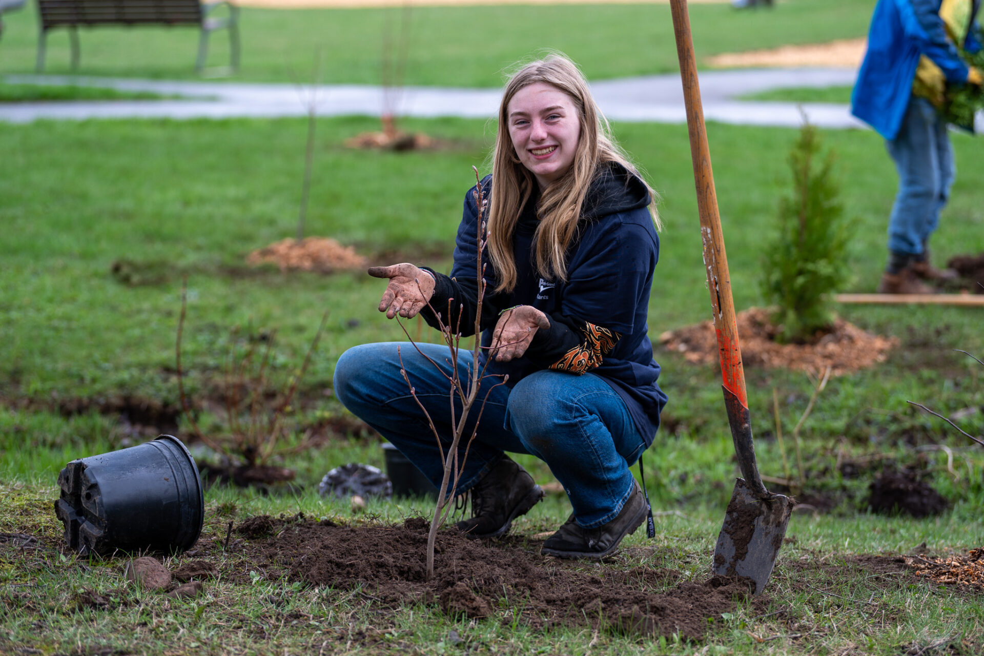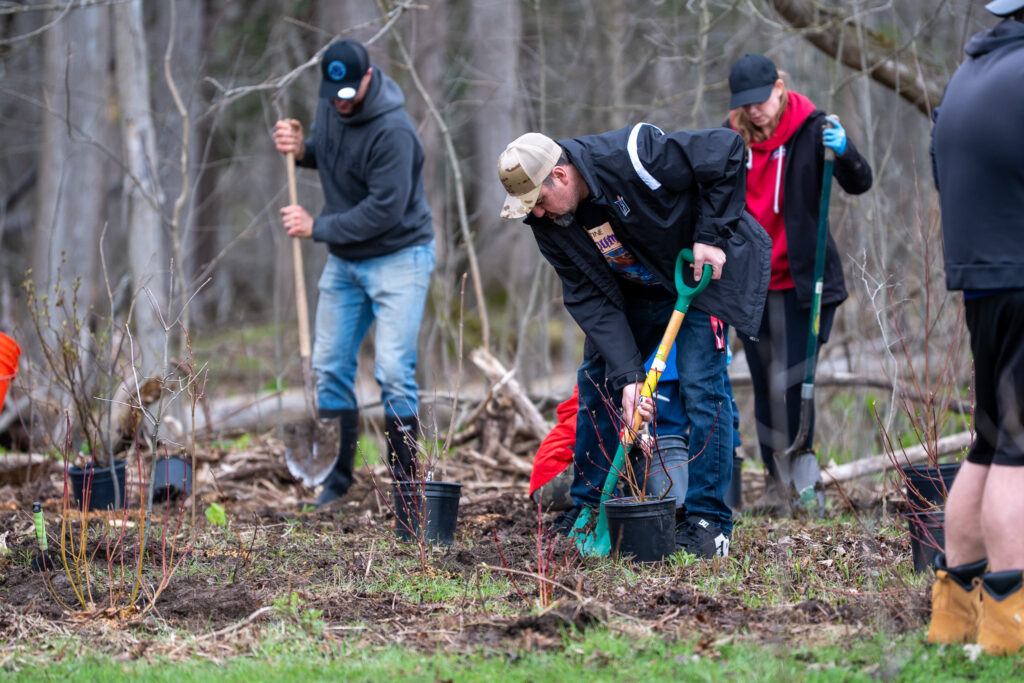 Throughout the event, residents made their way around the perimeter of the park planting native species like dogwoods, tamarack, maples and oaks, button bush, a variety of willows, as well as blue ash and hackberry–to name a few.